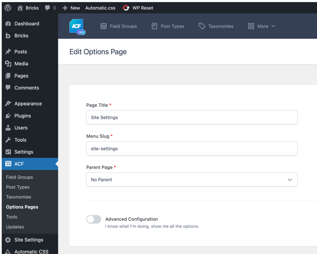 Then there's a ACF options page.
