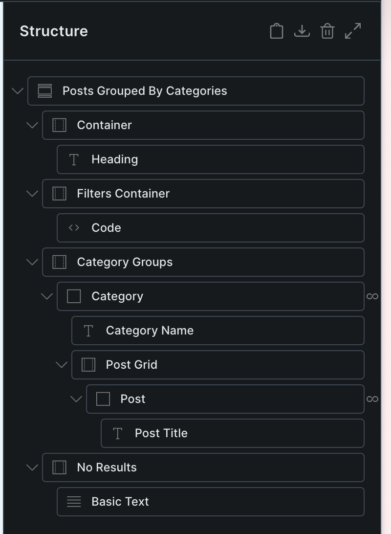 This Pro tutorial provides the steps for adding a category names select dropdown and instant search input field for post titles (and excerpts, if present) so visitors can filter posts grouped by categories (or CPT posts grouped by a custom taxonomy) when using a Posts query loop nested inside a Terms query loop.