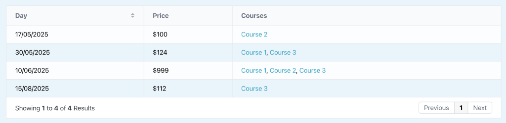 time_table(Repeater)day(Date Picker)price(Number)course(Relationship)