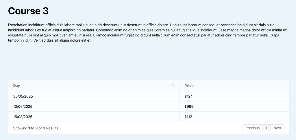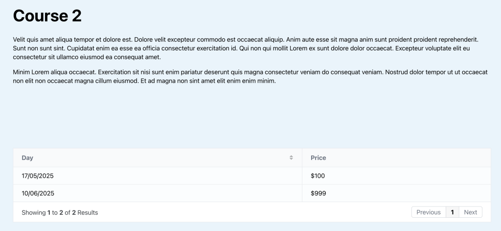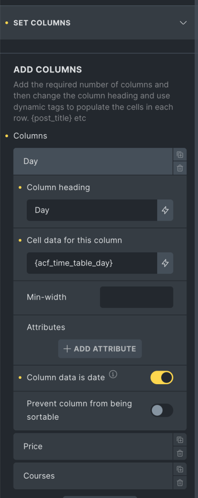 This Pro tutorial provides the steps to set up a dynamic CPT ACF Repeater data table (with optional search, pagination, column sorting etc.) that loops through the rows and outputs the data populated on the settings page in columns on a page plus, filter the data table to only include the rows that contain the current single course via bricks/query/result filter when viewing single courses.