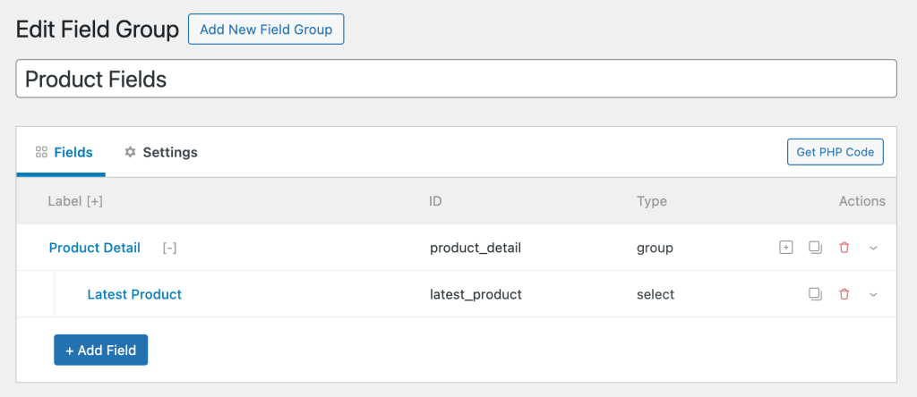 [optional] If you want to output the value of the 'Latest Product' select subfield on single products, add this in a Code element: