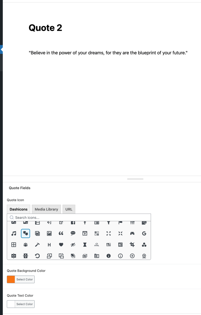 We shall set up custom fields for icon, background color and text color for the quote posts, pull their values and show/apply to the quote posts.