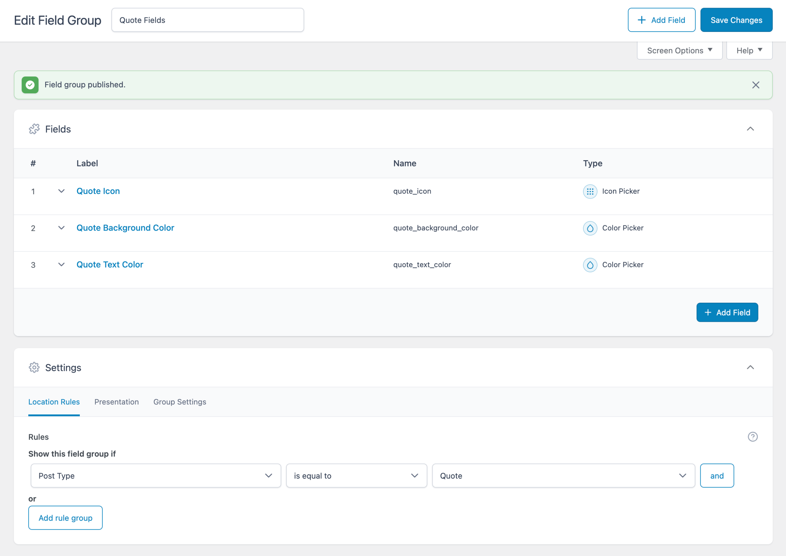 We shall set up custom fields for icon, background color and text color for the quote posts, pull their values and show/apply to the quote posts.