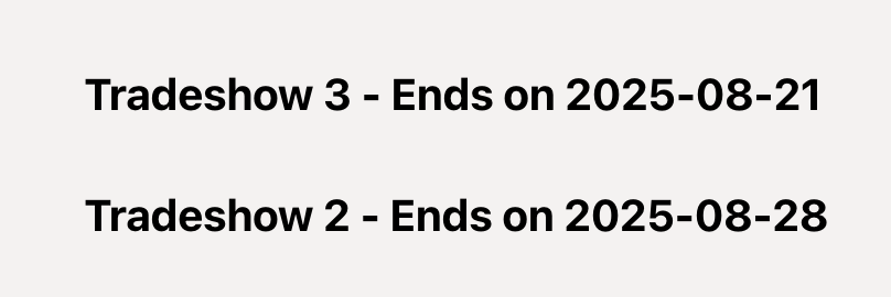 Hi all, really need a little guidance on this one. I have a CPT called tradeshows, set up with ACPT. I have a loop showing them, but I would like to have the ones that the “End Date” has passed the current date to drop off and not be a part of the loop. I have tried so many combinations my head is spinning. Nothing is working. The field for the “end date” is {acpt_tradeshows_trade-show_end-date} I have tried Numeric instead of date for type, nothing is working. Please ask if theres anyhting I’m not sharing that might be helpful. Thank you!
