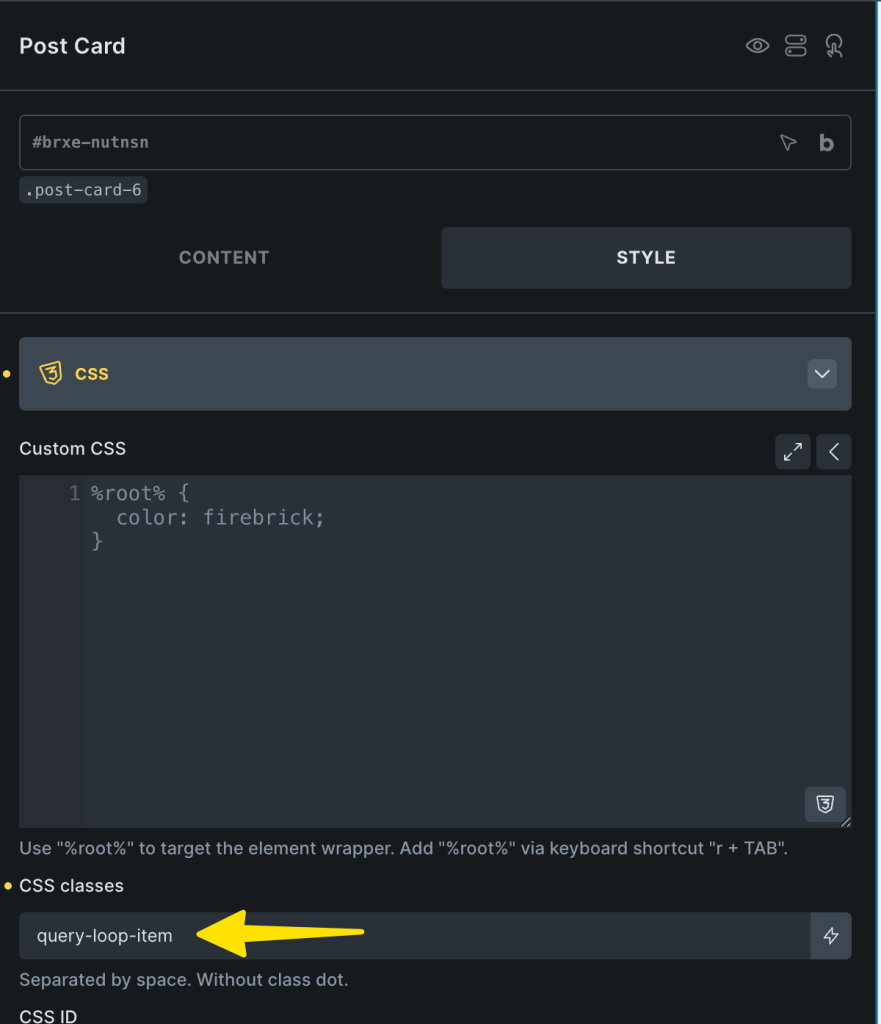 Select the query loop-enabled Block element, go to its CSS settings and add this class: query-loop-item